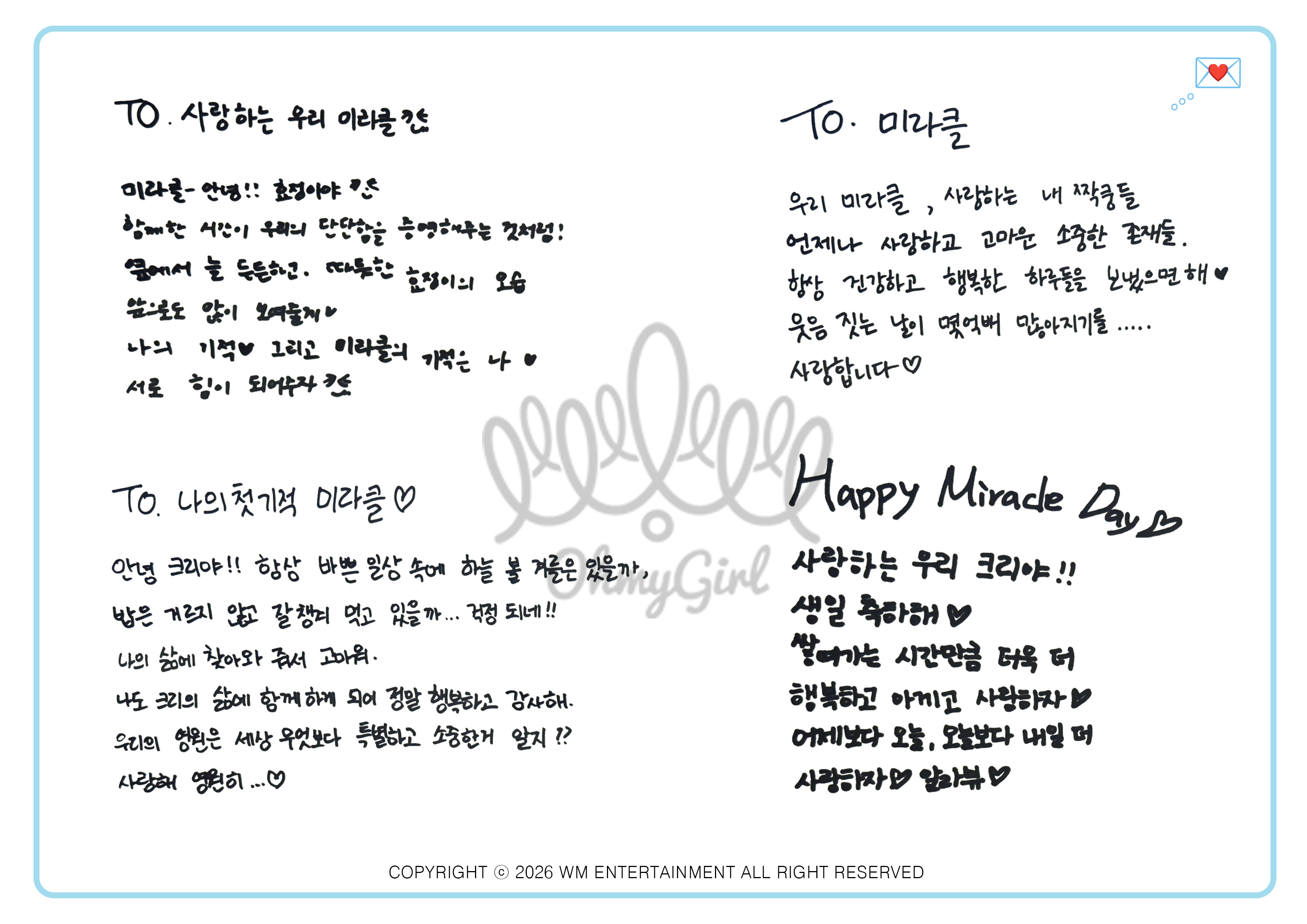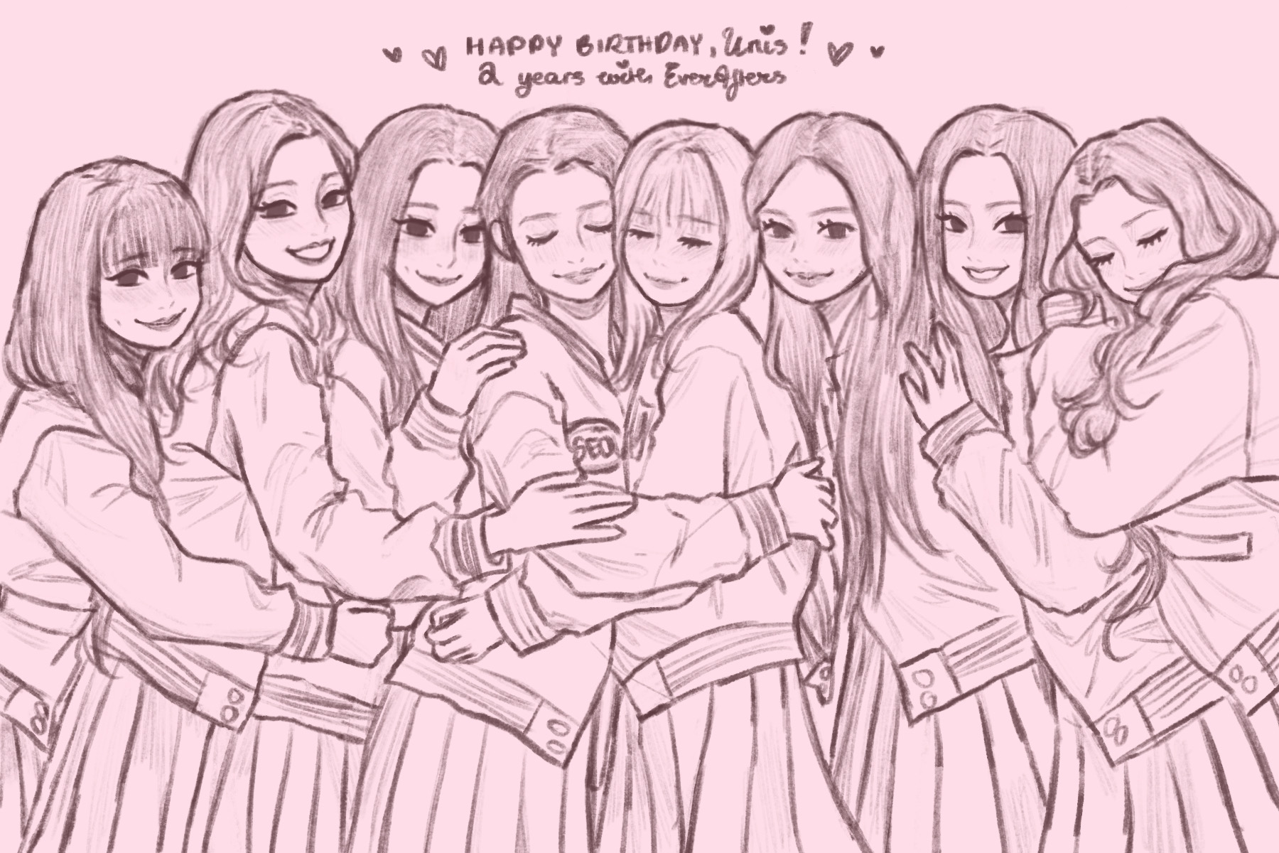 our first group photo. i cant help but feel nostalgic when i try and take in the fact that its been 2 years since our debut.. time flies, doesn't it ? admittedly, there are still moments when i feel like i haven't changed at all. but its in special moments like when i read your precious fan letters, watch all your edits, and when i can easily joke around with the members in korean that it hits me like a wave how much ive grown with unis. i love these girls, and i love you all <3