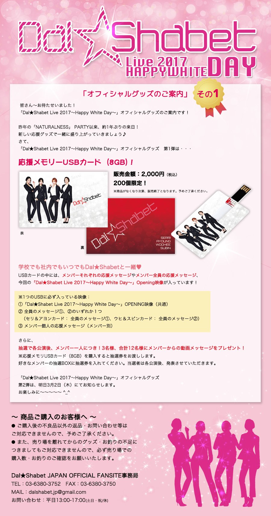 #DalShabet Live 2017「~Happy White Day~」オフィシャルグッズ第1弾は・・・応援メモリーUSBカード(8GB)です♪ 第2弾は、明日3月2日(木)にてお知らせします。お楽しみに^^