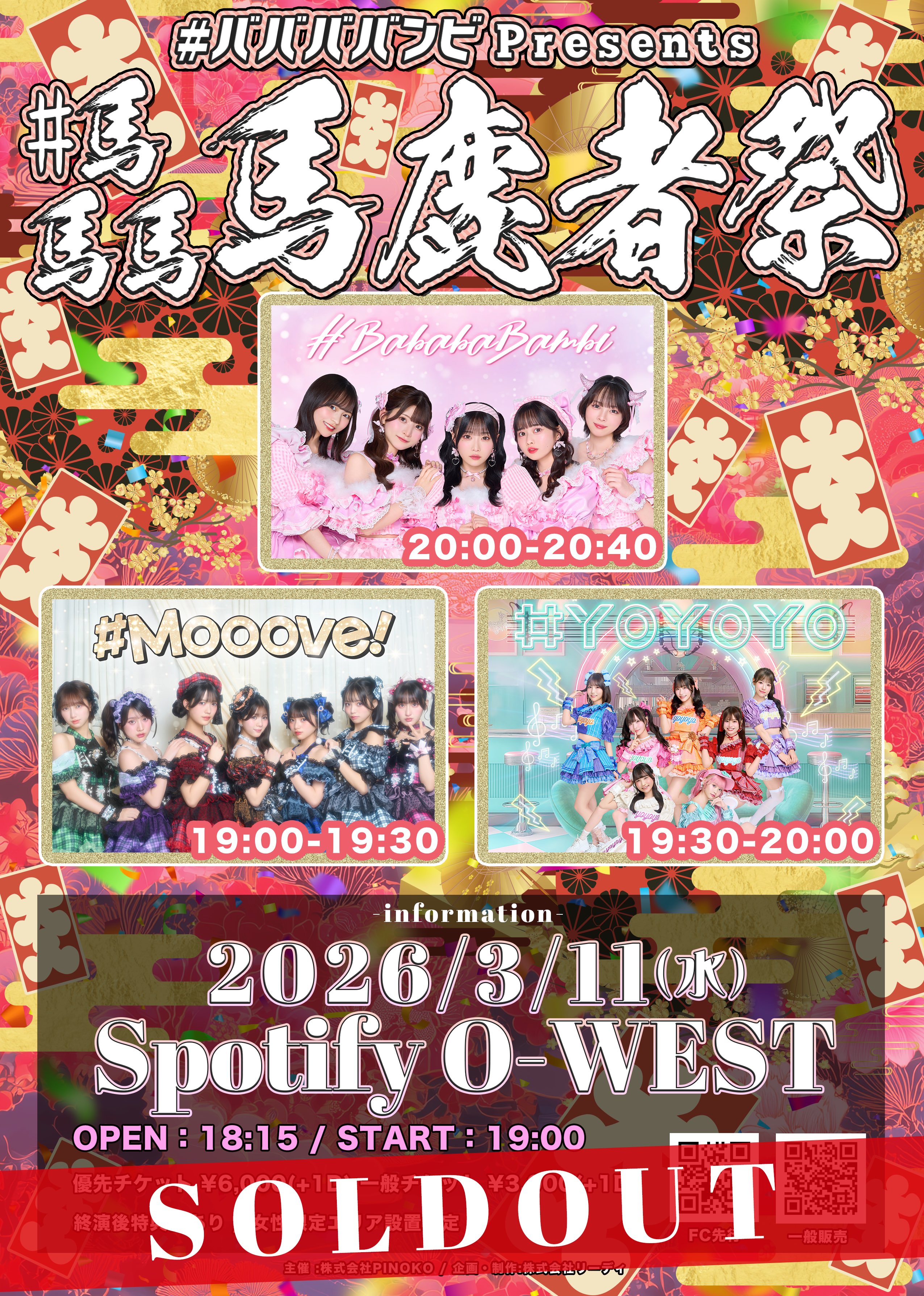 THANK YOU SOLD OUT㊗️ꔛ━━━━━━━━━━━ꔛ3/11(水)『#ババババンビ presents #馬馬馬馬鹿者祭 』会場:Spotify O-WESTꔛ━━━━━━━━━━━ꔛチケット完売です🎫そして、明日のタイムテーブル発表🕓#ババババンビ ラスト対バン🦌🐏Ⓜ️みんなで楽しい時間にしましょう🤘🏻