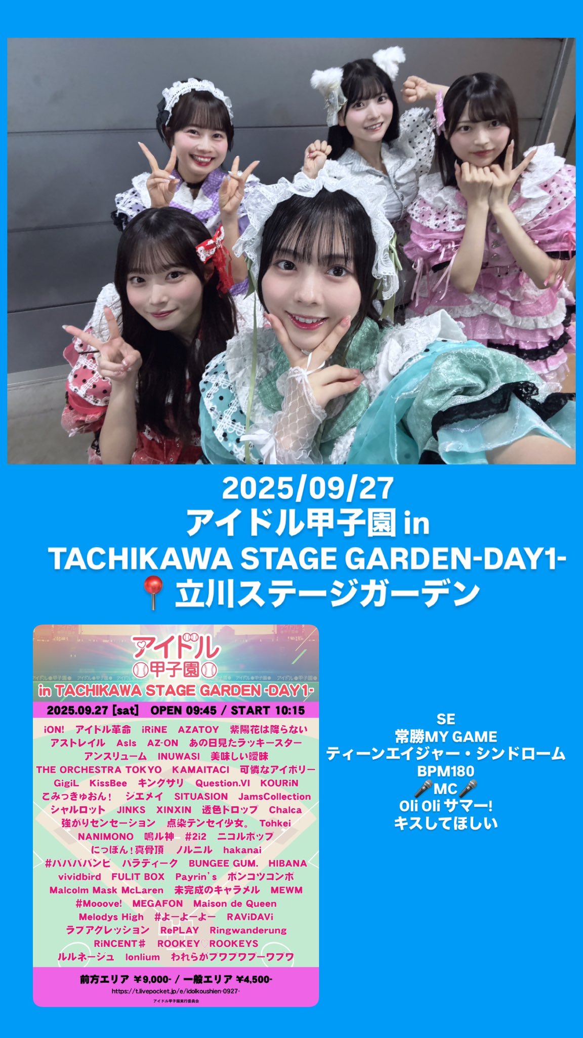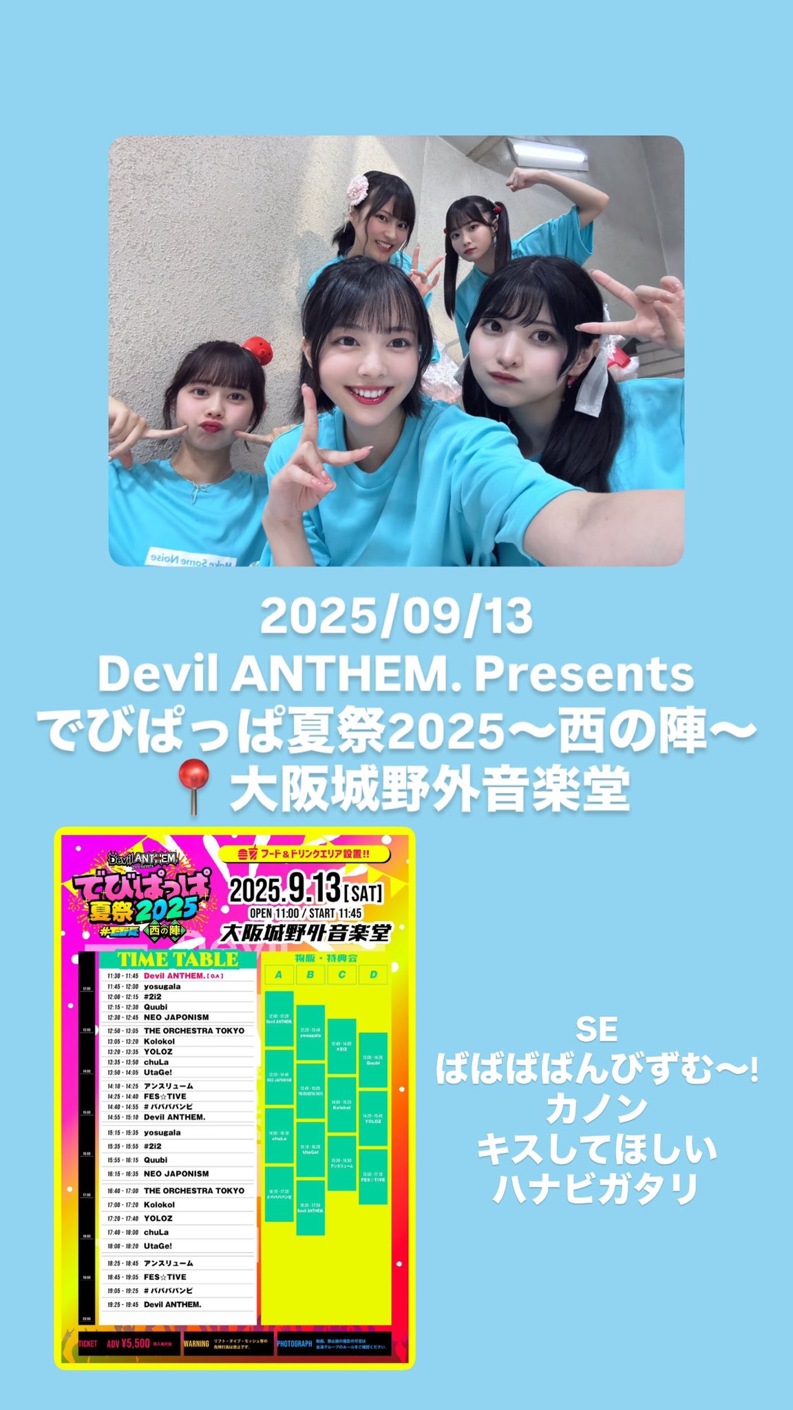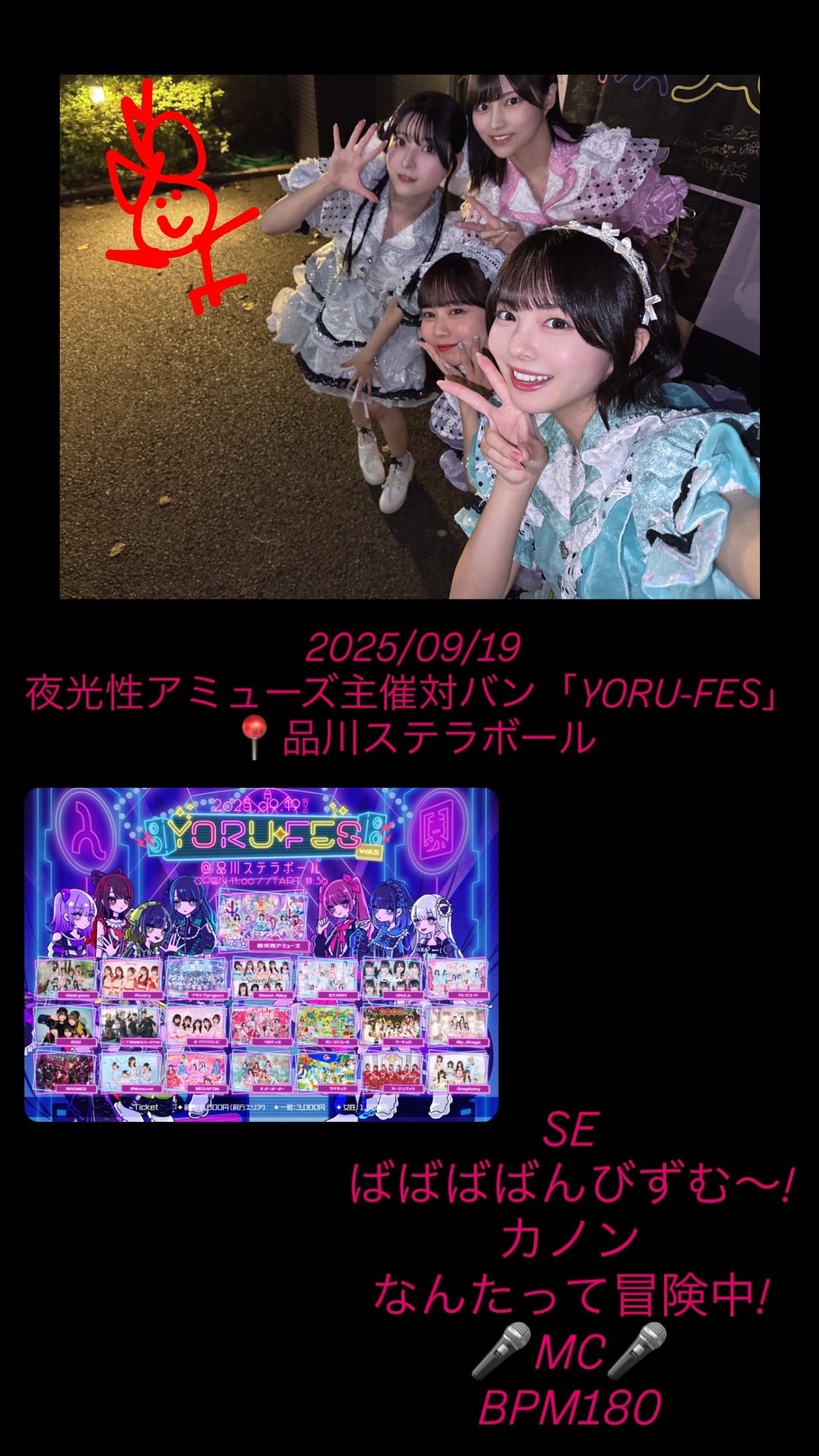 2025/09/02 #バンビのセトリふぃくふぇす!vol.17〜8人体制ラスト!〜📍Spotify O-EASTSEあのねのね恋のキャンディ🎤MC🎤Oli Oli サマー!とぅーまっそ青春ギルティ本日もありがとうございました♡次のライブ予定は9/13Devil ANTHEM. 10th Anniversary Year
