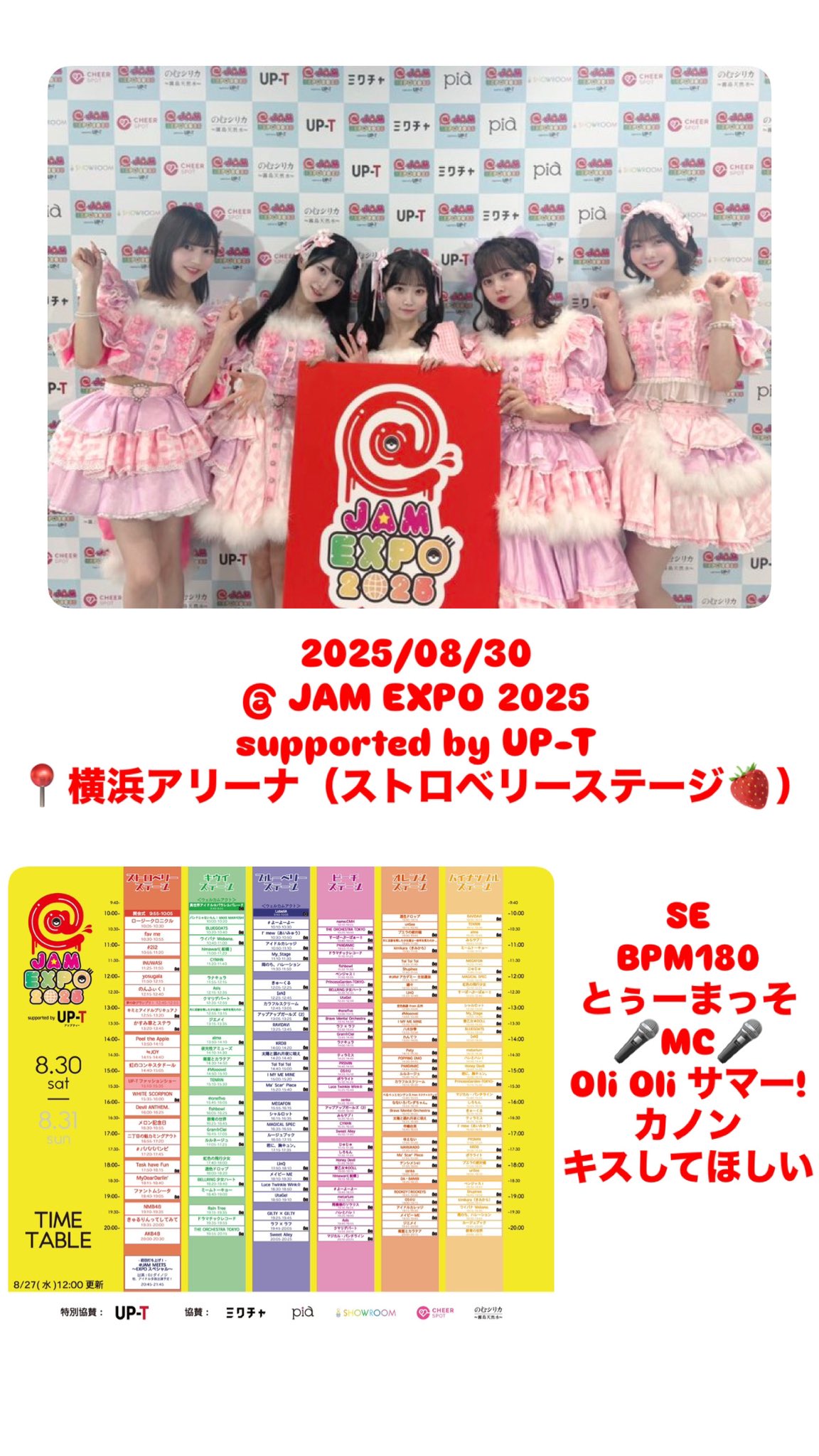 2025/08/30 #バンビのセトリ@ JAM EXPO 2025 supported by UP-T📍横浜アリーナ(ストロベリーステージ)BPM180とぅーまっそ🎤MC🎤Oli Oli サマー!カノンキスしてほしいとーーーーっても楽しかった‼︎横アリはやっぱり大きいね🏟️🐜またストロベリーステージに出演できますように♡次の