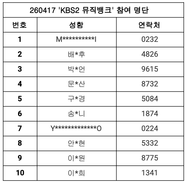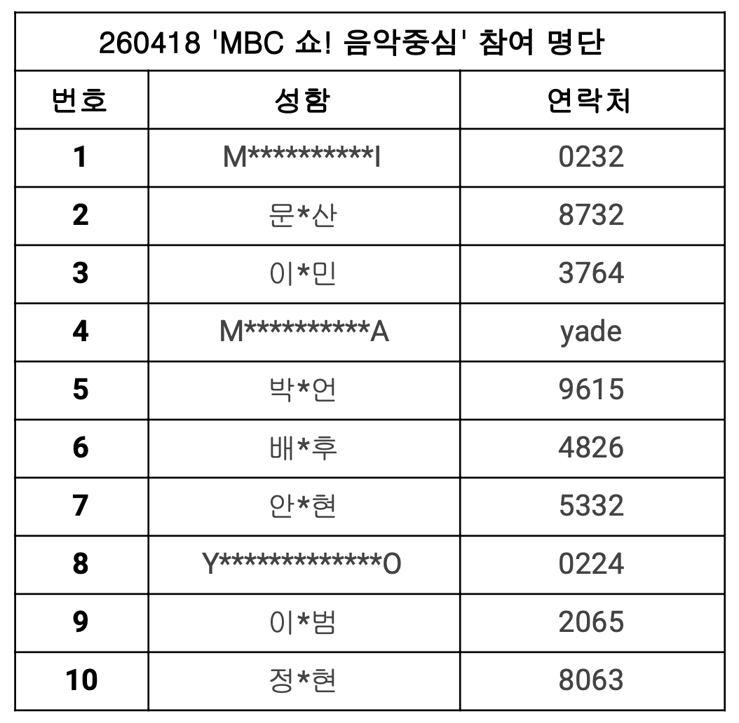 - 녹화 당일 방송사 사정에 따라 인원 체크 시간, 참여 인원이 변동이 있을 수 있습니다.(cosmosy 공식 X(@cosmosy_x) 상시 확인 필수)