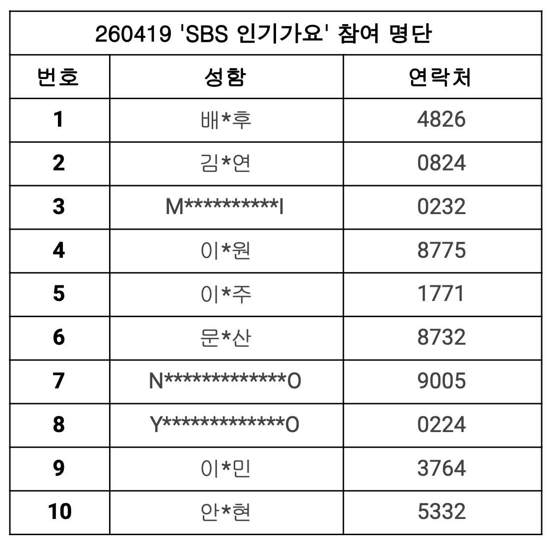 2026년 4월 19일 (일) cosmosy SBS ‘인기가요’ (막방) 생방송 참여 명단 안내입니다.