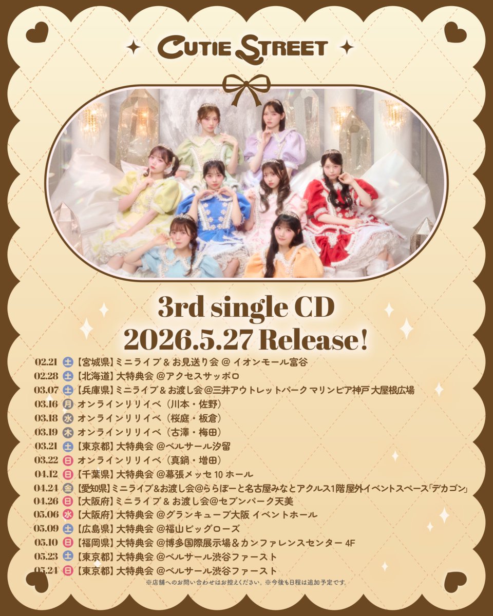 CUTIE STREETオフィシャルファンクラブ有料会員向けにツアーも実施予定。詳細は後日発表致します✈️