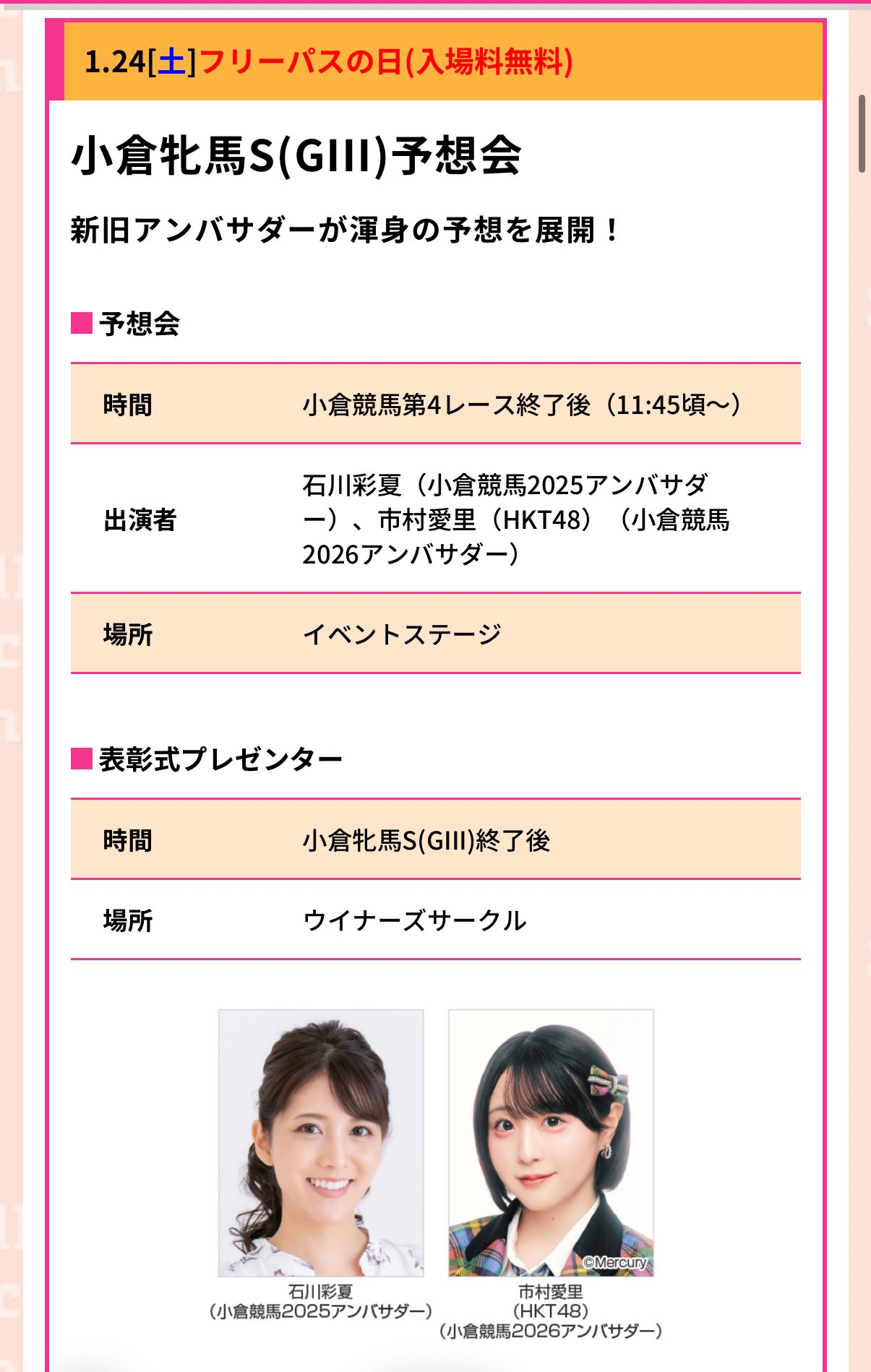 小倉牝馬ステークス予想会、そして表彰式プレゼンターまで…光栄すぎる1日でした……!小倉競馬場に来てくださった皆さんありがとうございます🐴✨