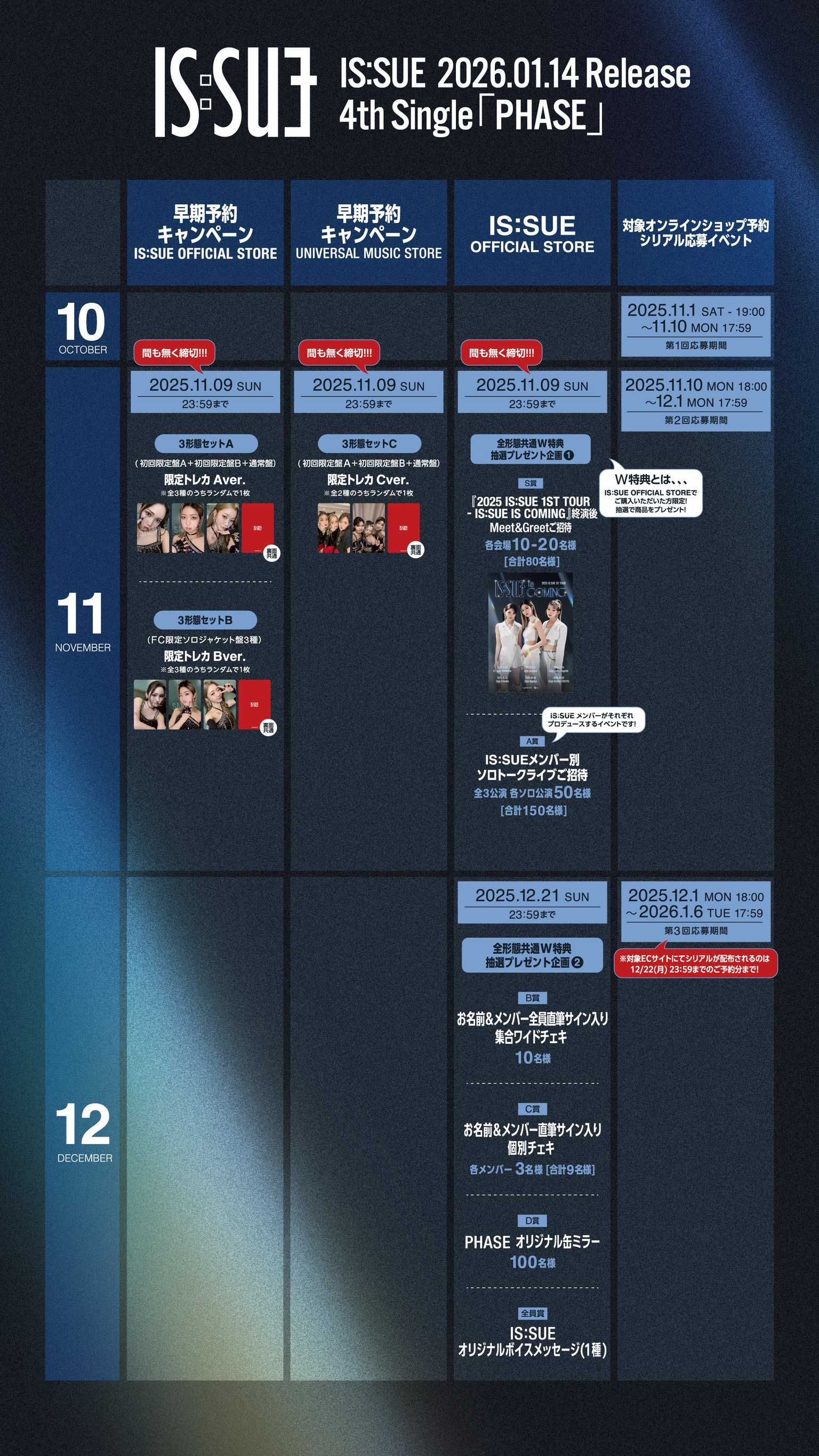 〖 NEWS UPDATE 〗IS:SUE 4TH SINGLE"PHASE"IS:SUE OFFICIAL STORE &UNIVERSAL MUSIC STORE限定早期予約キャンペーン決定!https://cf.is-sue.jp/news/detail/532#ISSUE #イッシュ #이슈#PHASE