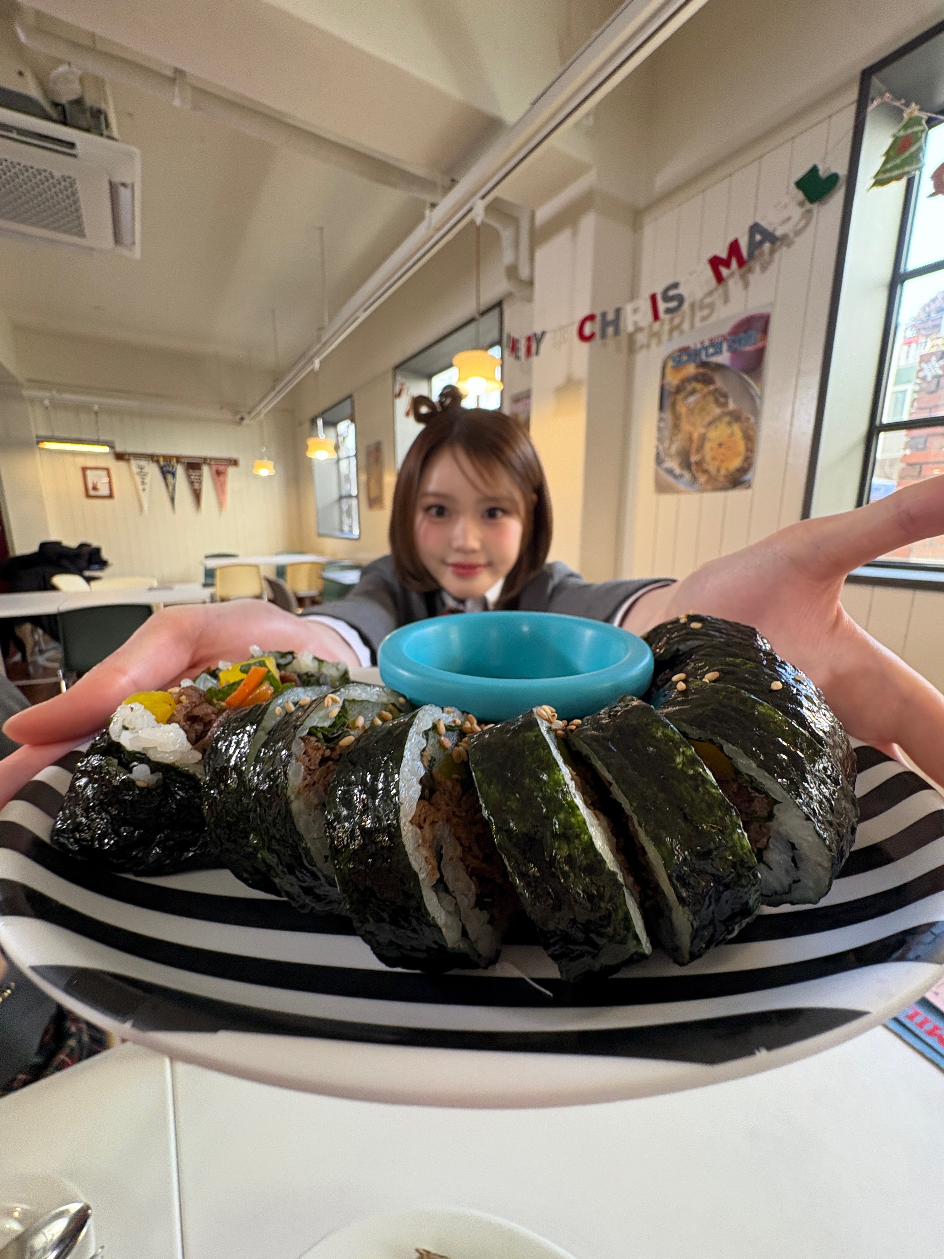 어느 날의 삐야 일기카이센동을 먹었다. 🍱 너무 맛있어서 싹싹 긁어먹구 수란까지 비벼서 먹었는데 수란이랑 꼭 같이 먹는 걸 추천한다! 🥚카이센동 먹고 두바이 붕어빵도 먹었다! 일 분 만에 먹은 것 같다 그리구 한강 다리를 걸었다! 날씨가 추워서 꽁꽁 눈사람 룩으로 입구 걸었다!⛄️ 걷는 길에 핑크 유람선도 보구 삐 발이 너무 귀여워서 낙엽이랑 사진도 찍