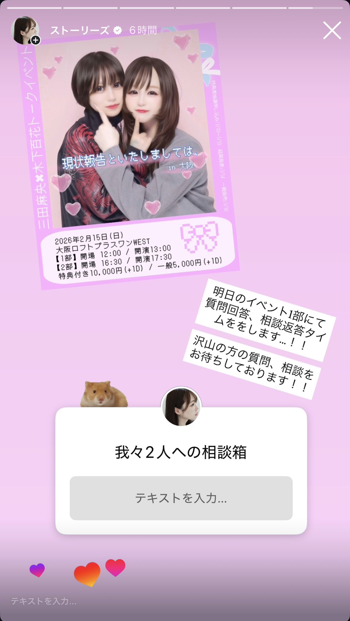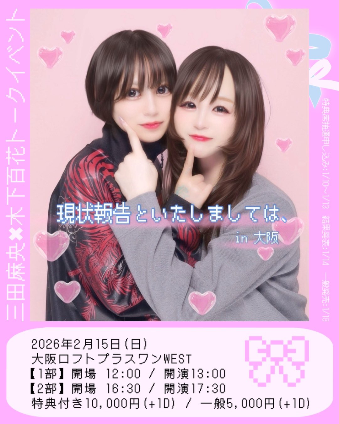 三田麻央×木下百花トークイベント【現状報告といたしましては、】2025年12月27日(土)代々木A Talk Club WOOFER開場18:30/開演19:00⸻三田麻央×木下百花カラオケアフターパーティー【現状報告、追記。】2025年12月27日(日・深夜)代々 A Talk Club WOOFER開場24:30/開演25:00