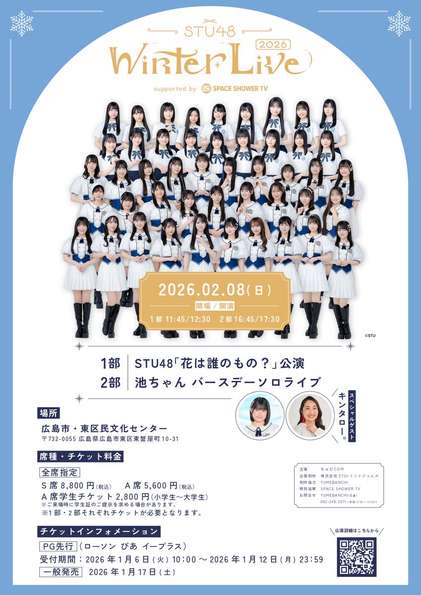 #STU48 Winter Live 2026「池ちゃんバースデーソロライブ」いよいよ近づいてきました…!!🥺笑って歌って、忘れられない最高の時間にしましょう!!お待ちしています🙂↕️🙏🏻🌟ローチケ💙https://l-tike.com/search/?keyword=61704ぴあ🩵https://w.pia.jp/t/ikeda-yura-h/イープラス🩷https://eplus.jp/stu48/