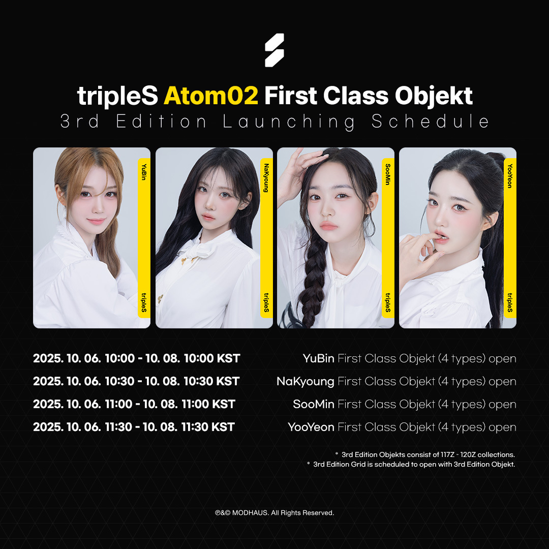 tripleSFirst Class ObjektAtom02 3rd EditionDay 6Check out on <Cosmo : the Gate>🔗 http://bit.ly/3VWwxcG※ Atom02 3rd Edition 판매가 끝난 뒤에 Spin을 통해서 Atom02 3rd Edition의 First Class Objekt와 Special Class Objekt 획득이 가능해집니다.※ Once the sale of Atom02 3rd