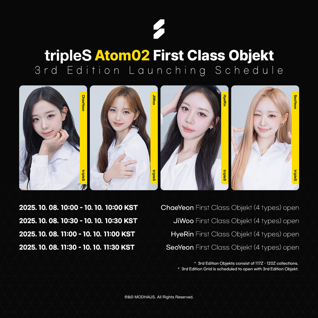 tripleSFirst Class ObjektAtom02 3rd EditionDay 5Check out on <Cosmo : the Gate>🔗 http://bit.ly/3VWwxcG※ Atom02 3rd Edition 판매가 끝난 뒤에 Spin을 통해서 Atom02 3rd Edition의 First Class Objekt와 Special Class Objekt 획득이 가능해집니다.※ Once the sale of